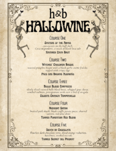 Join us for an evening of hauntingly delicious dishes & wickedly fine wines!